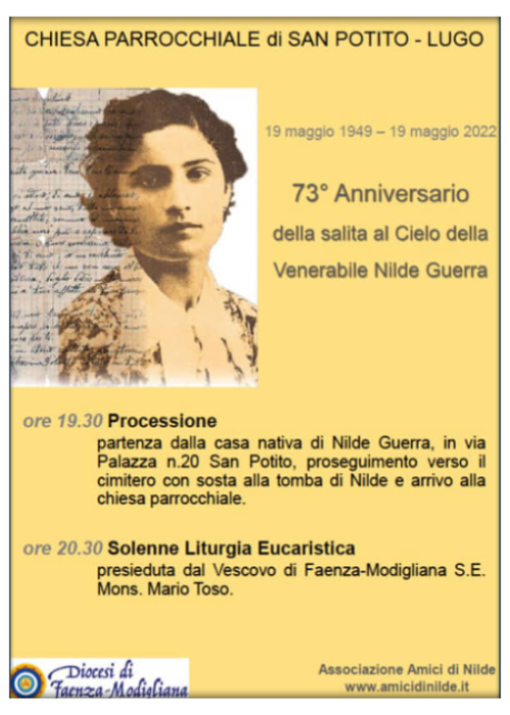 Cari fratelli e sorelle, nell' anniversario della morte di Nilde Guerra riviviamo la sua Spiritualità, imperniata attorno all' amore di Gesù Cristo crocifisso. Nilde desiderava di essere suora del Sacro Cuore di Gesù agonizzante. Come Gesù nel suo sacrificio si dona al Padre e muore per le persone, così Nilde Guerra voleva immolarsi spiritualmente, perchè i suoi parenti si convertissero, perchè i bambini del catechismo vivessero l' amore di Gesù: un amore totale, donato sino a morire in croce. Nella sua malattia si identificava con Cristo sofferente. Con Lui voleva salvate ad ogni costo i non credenti, i lontani dalla fede, consumandosi di amore per loro. Come abbiamo detto nello scorso 29 gennaio nella cattedrale di Faenza, Nilde è stata ed è un modello per noi impegnati nel cammino sinodale, perchè voleva costruire la Chiesa con uno spirito missionario, uno spirito di amore ricevuto e dato. Proprio per questo, la possiamo considerare un' apostola al pari di Barnaba e di Paolo, dei quali abbiamo sentito parlare in questi giorni negli Atti degli apostoli. Paolo e Barnaba confermavano i convertiti nella fede e li innamoravano di Gesù, il Buon Pastore. Ne facevano risuonate la voce, mediante la quale Egli si faceva comprendere dalle sue pecore. Come si faceva comprendere ed amare? Con la «voce» di Colui che toglie i peccati del mondo, che dona la sua vita per le sue pecore, immolandosi sulla Croce. Paolo, in altri momenti del suo itinerario missionario confidava ai Corinzi che era stato mandato ad annunciate Cristo crocifisso, la cui croce era per i credenti potenza di Dio (cf l Cor 1, 17-18), mentre per i pagani era stoltezza. Il cristiano, ascoltando 1a voce del buon Pastore, del Pastore bello, comprende ed accoglie il modo di vivere del Pastore che perde e dona la sua vita per i suoi. Gesù si propone alle sue pecore, ai cristiani, come i1 Servo sofferente, che ama perdutamente il Padre e l' umanità. Il nostro essere cristiano, che è un essere di Cristo, deriva dall' incontro con il Buon Pastore, il Pastore bello, vero. Come disse Basilio di Seleucia (Disc. 26,2) la relazione che il Pastore inaugura con ciascuna delle sue pecore è unica, una conoscenza del cuore, propria di chi ama e di chi è amato. Il Bel Pastore non ha un rapporto qualunque, indistinto, di convivenza con i suoi. Si tratta di un incontro personalissimo, profondo, che come scrive l’Apostolo Paolo, implica che «Egli mi ama e dà se stesso per me» (cf Gal 2,20). Con il suo amore Gesù Cristo ci lega a Lui, ci rende suoi per sempre.