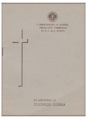 Il grado ammirevole della sua virtù ci rimarrà ricordo indimenticabile e nel nostro dolore ci è di conforto la certezza Che l’ Associazione e la Parrocchia hanno un Angelo Tutelare presso il Trono dell’ Altissimo.